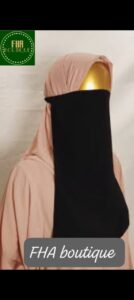 A simple and convenient rectangular niqab style made in a light weight airy fabric. usually work underneath your jilbab , khimar or hijab
